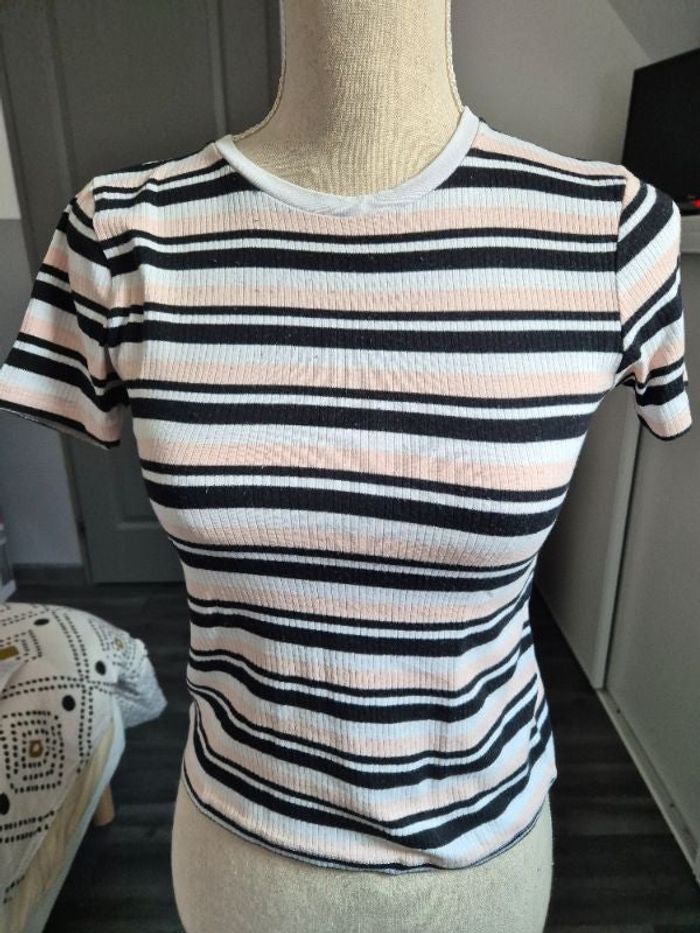 #teeshirt #gémo #fille14ans #rose #noir et #blanc #taille 14 ans #tresbonetat #coton 97% #élasthanne 3%