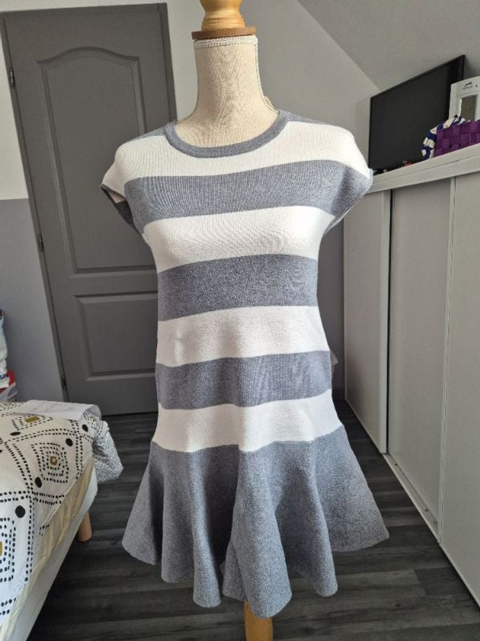 #Robe #zara . #Griseetblanc #cassée. Manche courte. #11/12ans #viscose #polyester #nylon