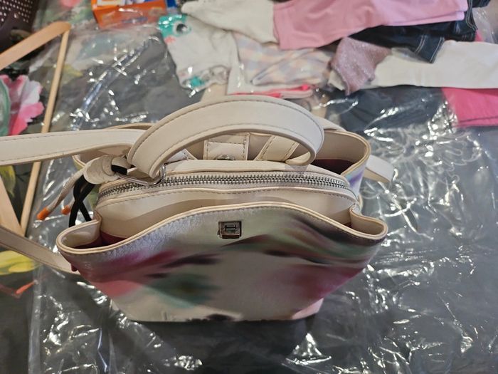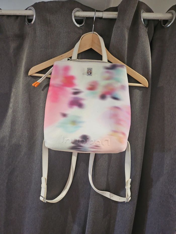 Il est en tres bon etat general et date de la collection de l'an passé. 1 leger petit accro (voir photo ) et légère usure sur une bretelles ainsi que sur le fermoir. Hyper pratique et aux couleurs vraiment sympas PAS DE VINTED GO: 80% de pertes de mes envois
