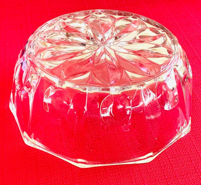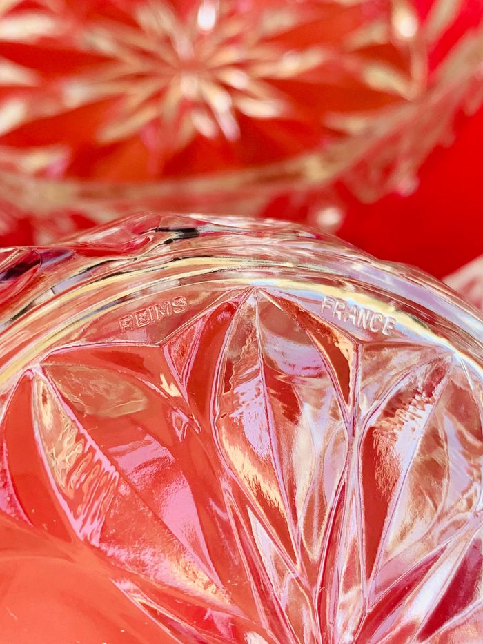 Bol saladier + 5 petits bols en verre très épais, motif rosaces, verre de Reims France - Bol diamètre 20,5 cm, diamètre base 16 cm, Hauteur 7,5 cm - 6 petits bols diamètre 11 cm, diamètre base 8,5 cm, Hauteur 4 cm ⛔️ Prix FIXES, NON négociables 🚨  👏🏻 Réductions sur les lots 👍🏻 #saladier #verreepais #vintage #collection #cc_divers