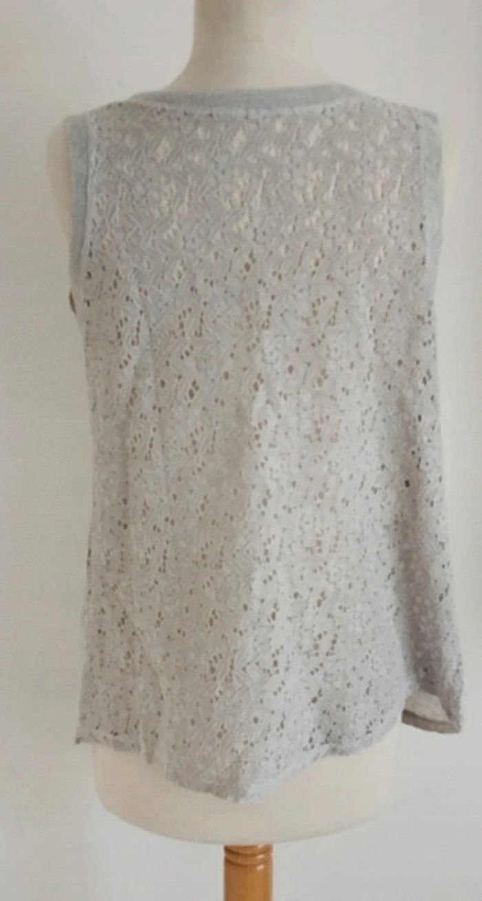 Blouse sans manches grise et argentée thème flamand rose dos dentelle taille 40