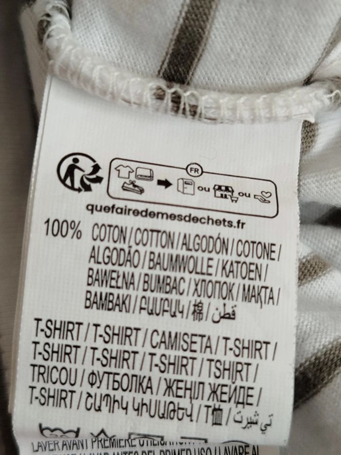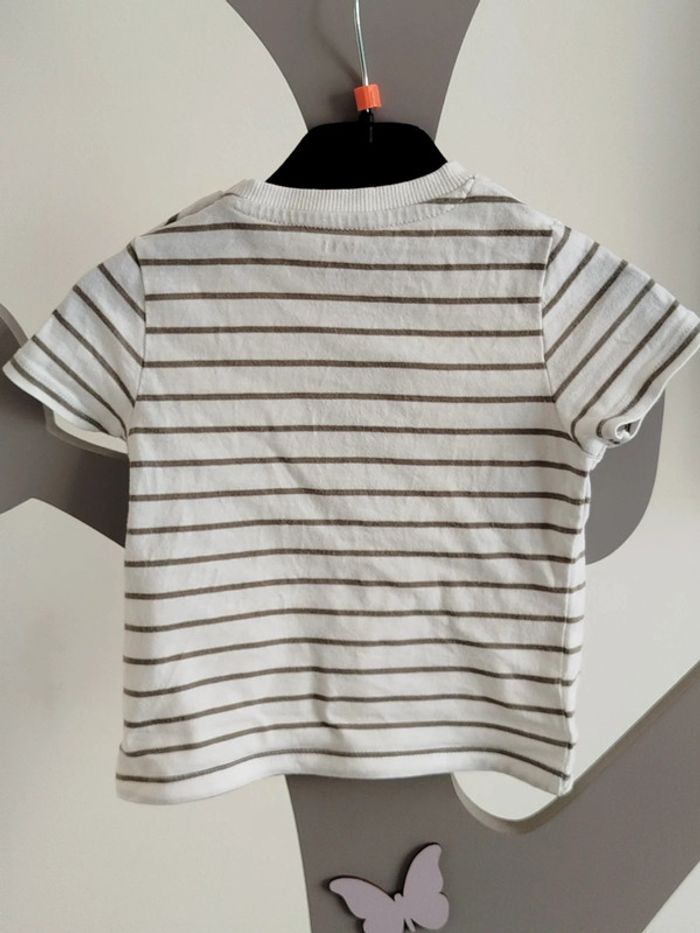 Tee-shirt manches courtes marinière blanc et kaki Kiabi taille 9 mois - photo numéro 4