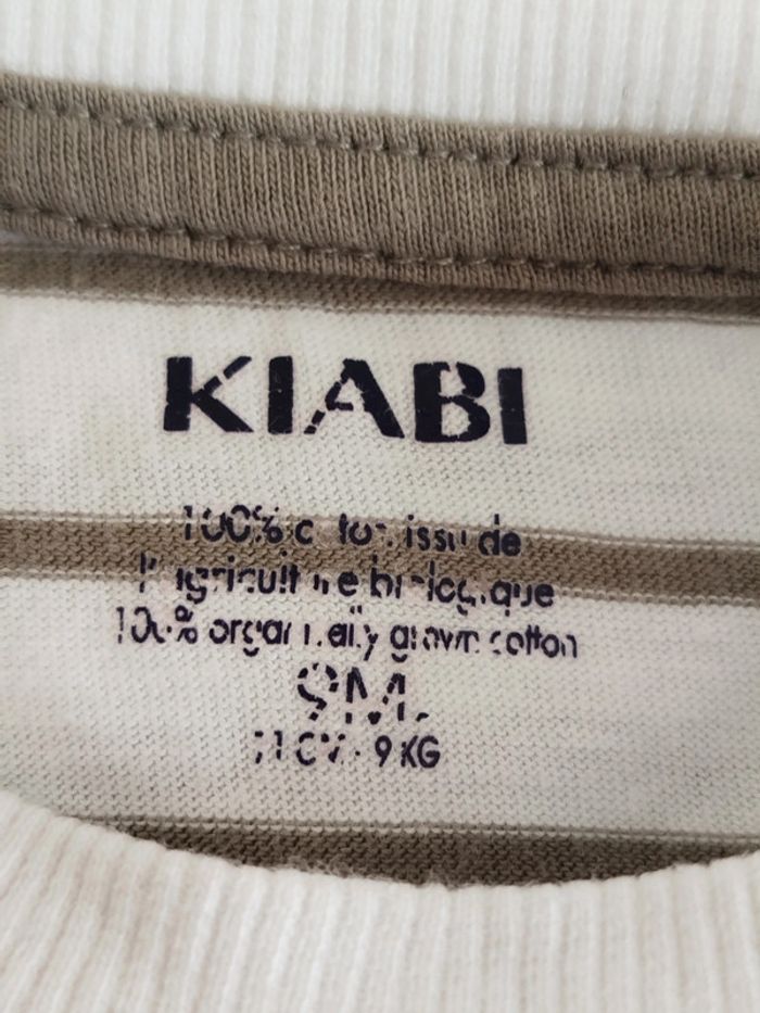 Tee-shirt manches courtes marinière blanc et kaki Kiabi taille 9 mois - photo numéro 3