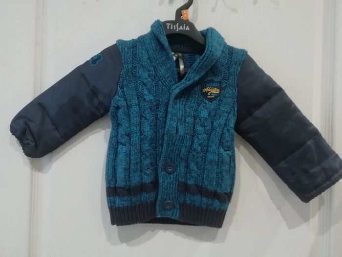 Gilet épais bi matière Attention une manche n'a plus d'élastique au bout (voir photo 3 à la différence de la photo 2) sinon en très bon état