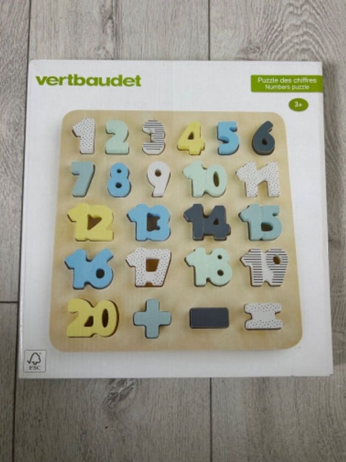 Puzzle des chiffres en bois de marque Vertbaudet Il est neuf, jamais ouvert, idéal pour cadeau. Pour voir mes autres jeux et jouets en vente, cliquez sur ce lien : #enoplou22jeuxetjouets