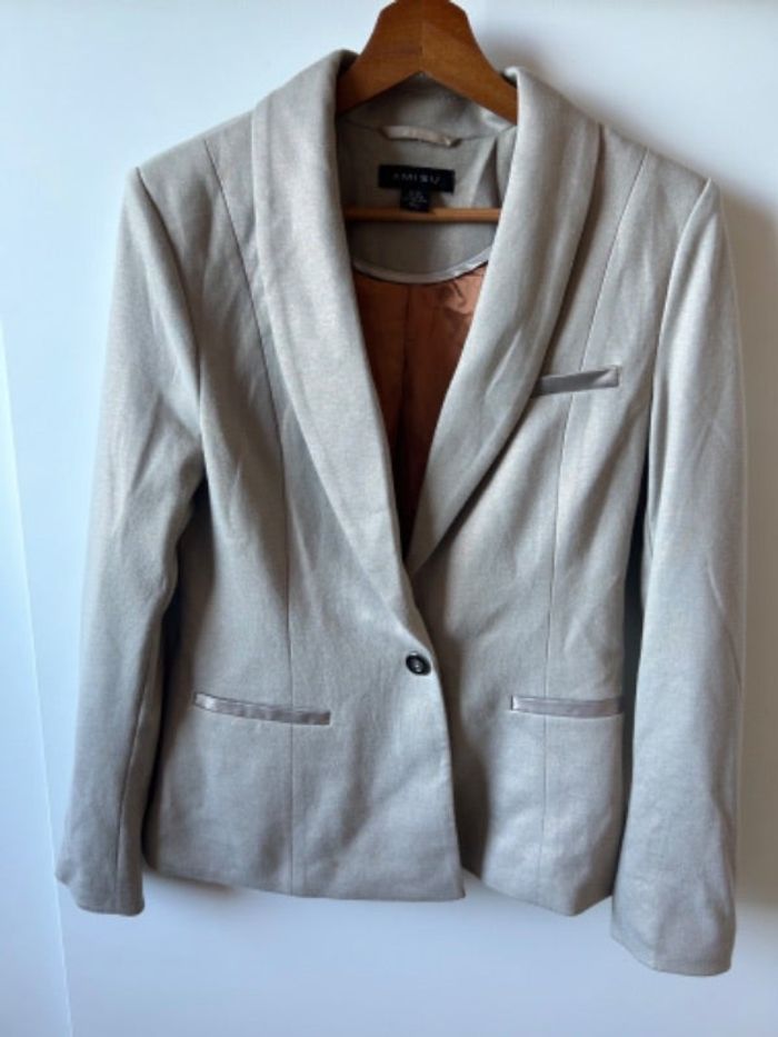 Veste blazer de marque Amizu Taille 36 Elle est grise clair avec des reflets dorés / cuivrés En très bon état