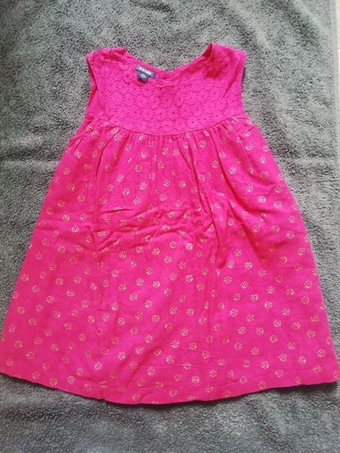 robe légère et doublée en coton couleur framboise fermeture par bouton sur toute la longueur à l'arrière une tâche de feutre sur l'avant (voir photo) taille 18 mois