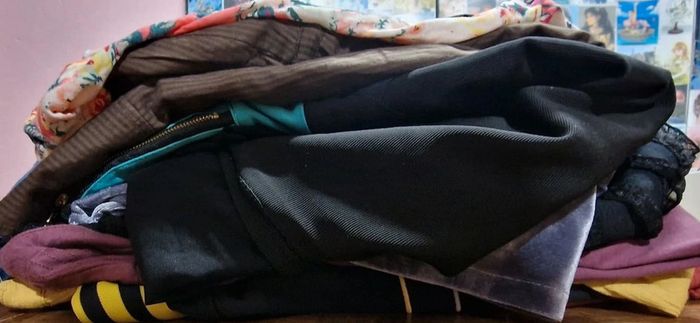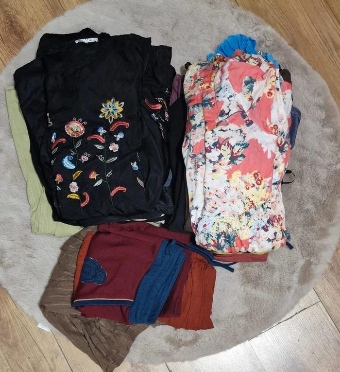 Lot non dissociable de 23 pièces femme (robes + 3 jupes) vendu en l’état, d’où le mini-prix. 1 € chacune soit 23€ le lot. Idéal à garder ou revendre. Marques variées. Certaines pièces sont en coton ou non ou élastiques ou non, d’autres sans taille mais équivalentes à du 38 /M/L normalement. Idéal pour porter ou revendre. Une taille 38 d'une marque n'est pas la même chez une autre enseigne.
