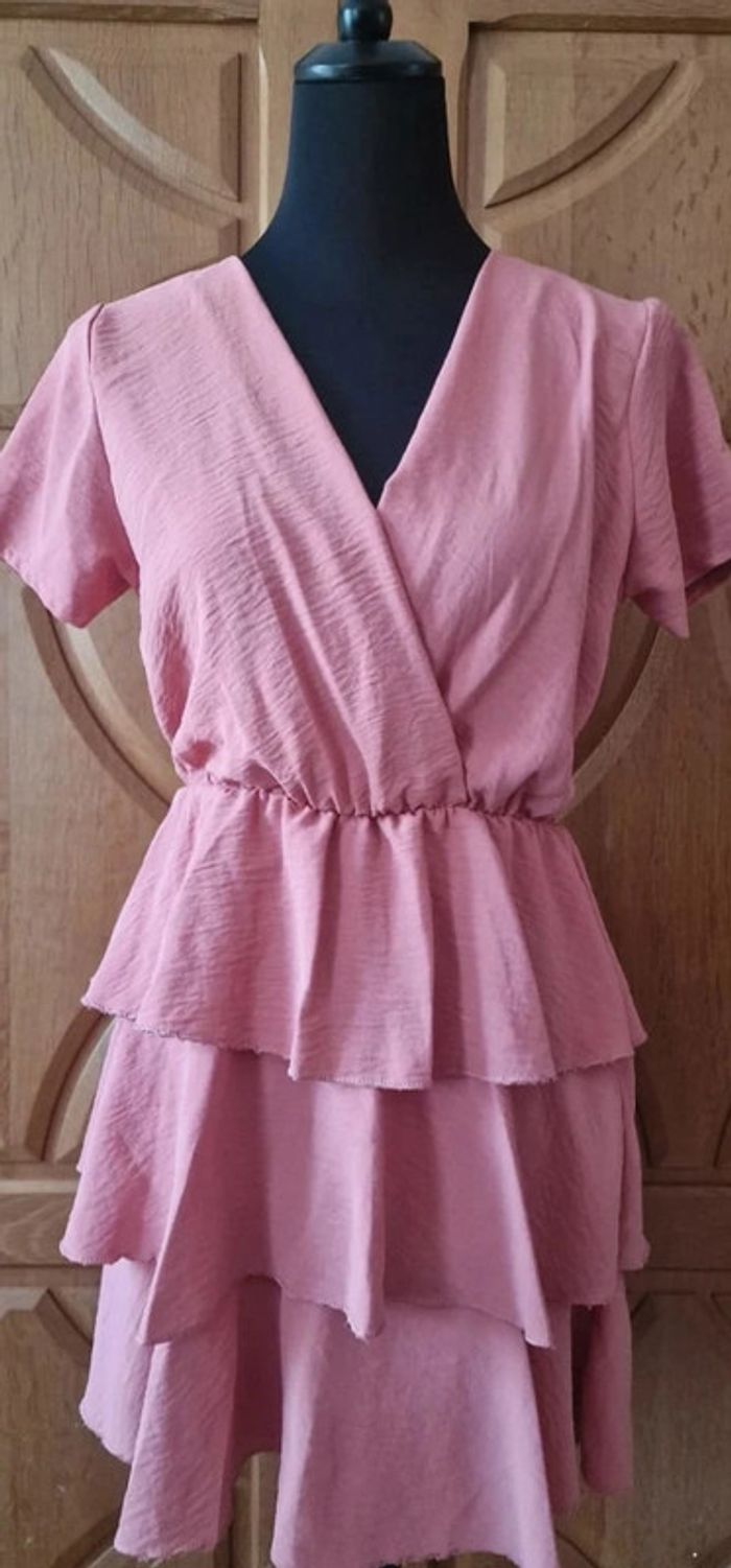 vestito rosa, vestito36, vestito38, vestito corto, vestito fluido, vestito romantico, vestito estivo, vestito a balze, vestito comodo, vestito chic, vita elastica,