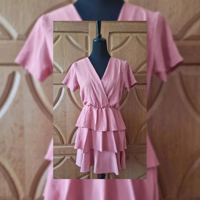robe rose, robe36, robe38, New Collection, robe courte, robe volantée, robe fluide, robe romantique, robe unie, robe cache-cœur, robe élastique, robe féminine, robe légère, robe chic, robe casual, robe élégante, robe à étages,