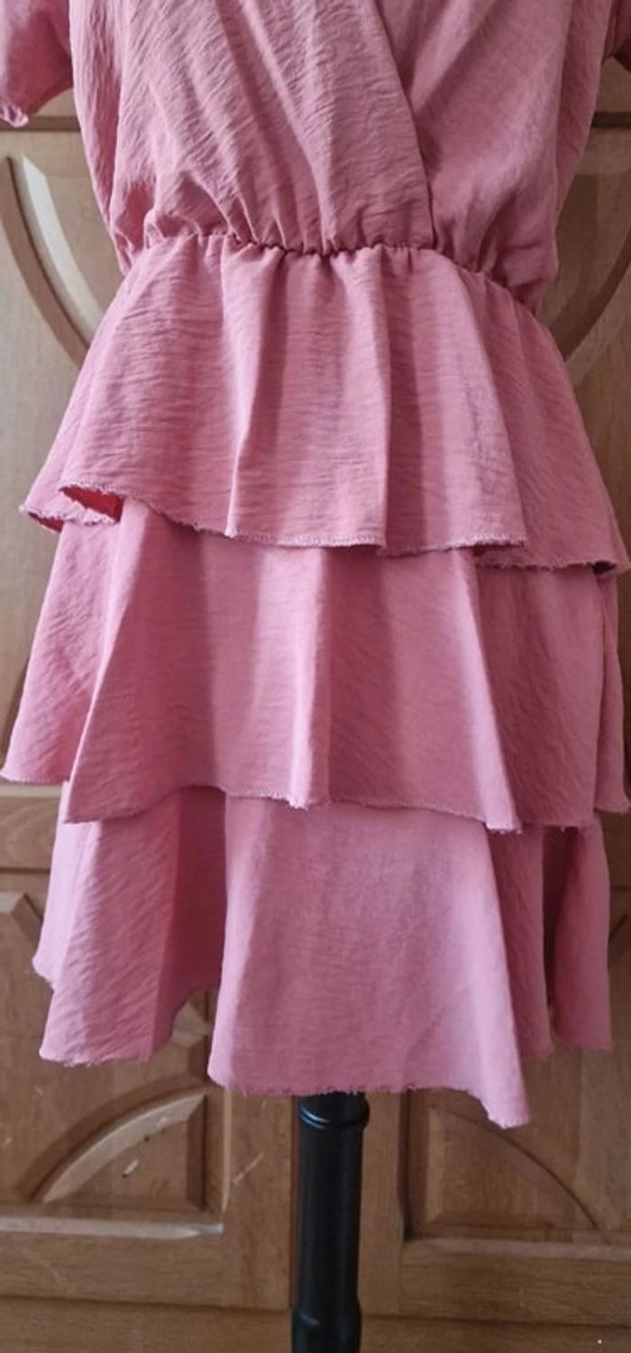 jurk roze, jurk36, jurk38, korte jurk, zomerse jurk, casual jurk, gelaagde jurk, romantische jurk, elegante jurk, effen jurk, comfortabele jurk, lichte jurk,
