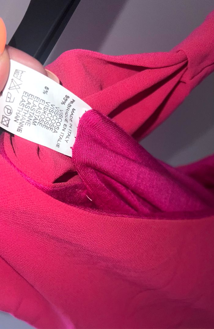 Haut, débardeur Sans manche coloris rose fushia Couleur Barbie Made in Italy Taille 38 95 % viscose 5 % élasthanne Tissu doublé Resserrer au bas Noeud dans le dos 📩Je réponds rapidement aux messages 📦Envoi rapide et soigné