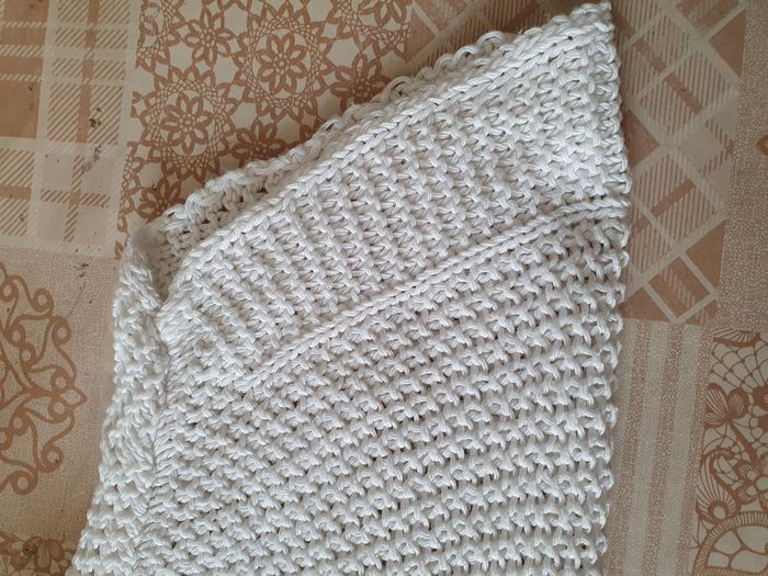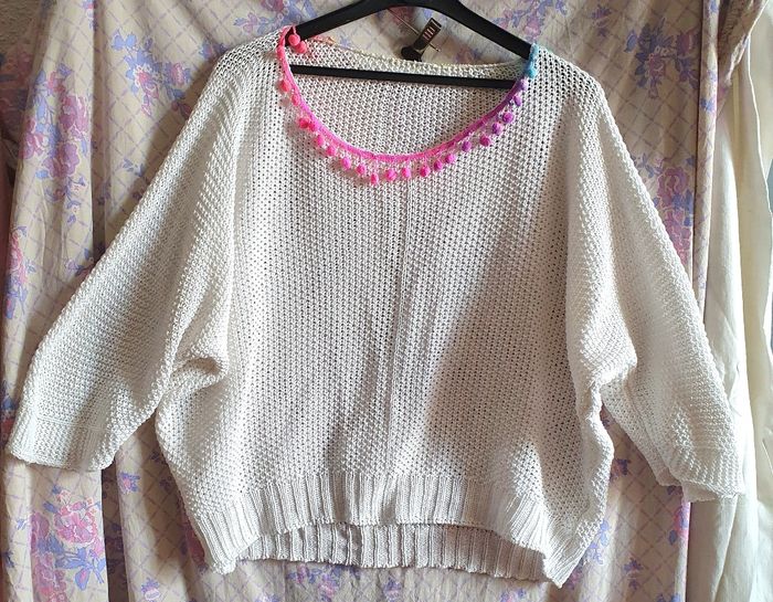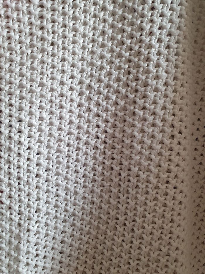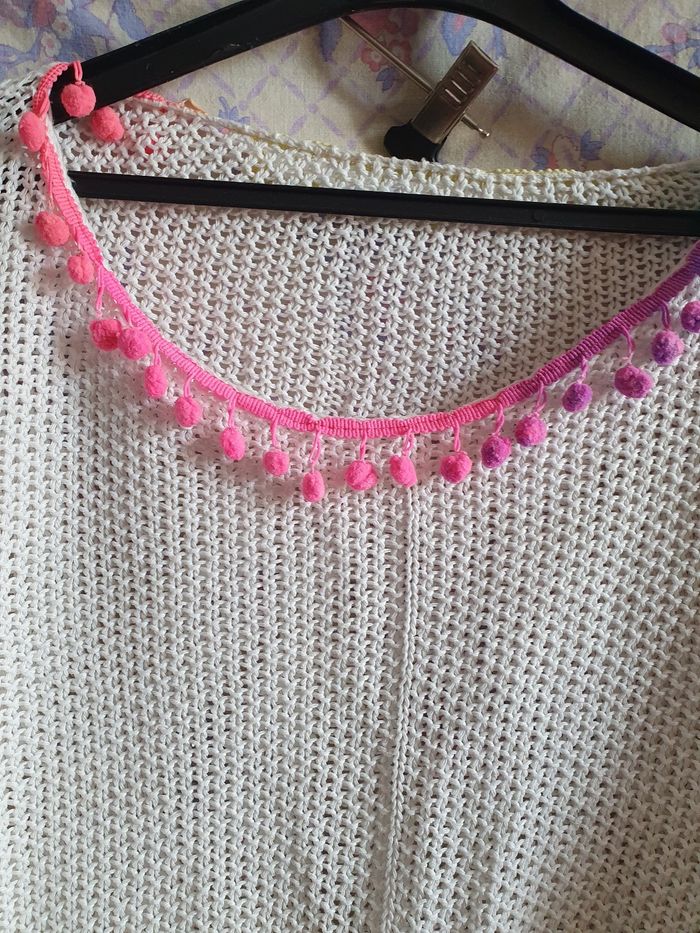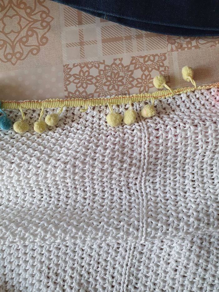 Effet crochet Largeur totaa plat manche comprise 124 cm Manque des pompons