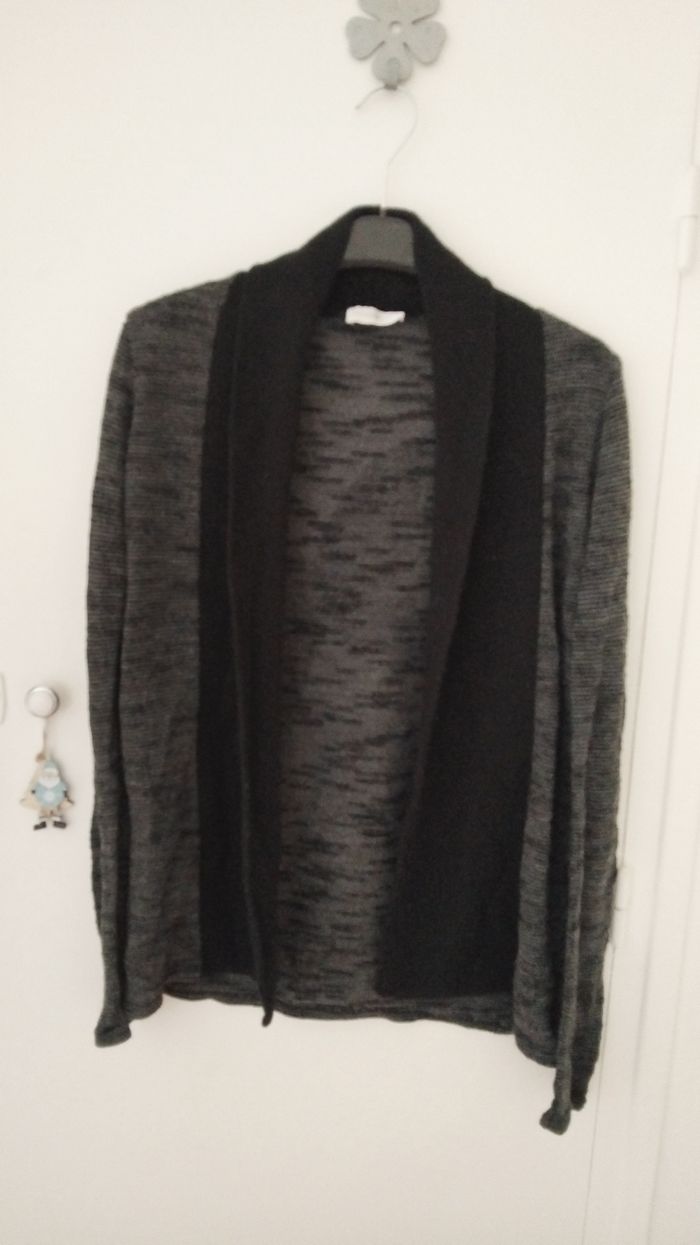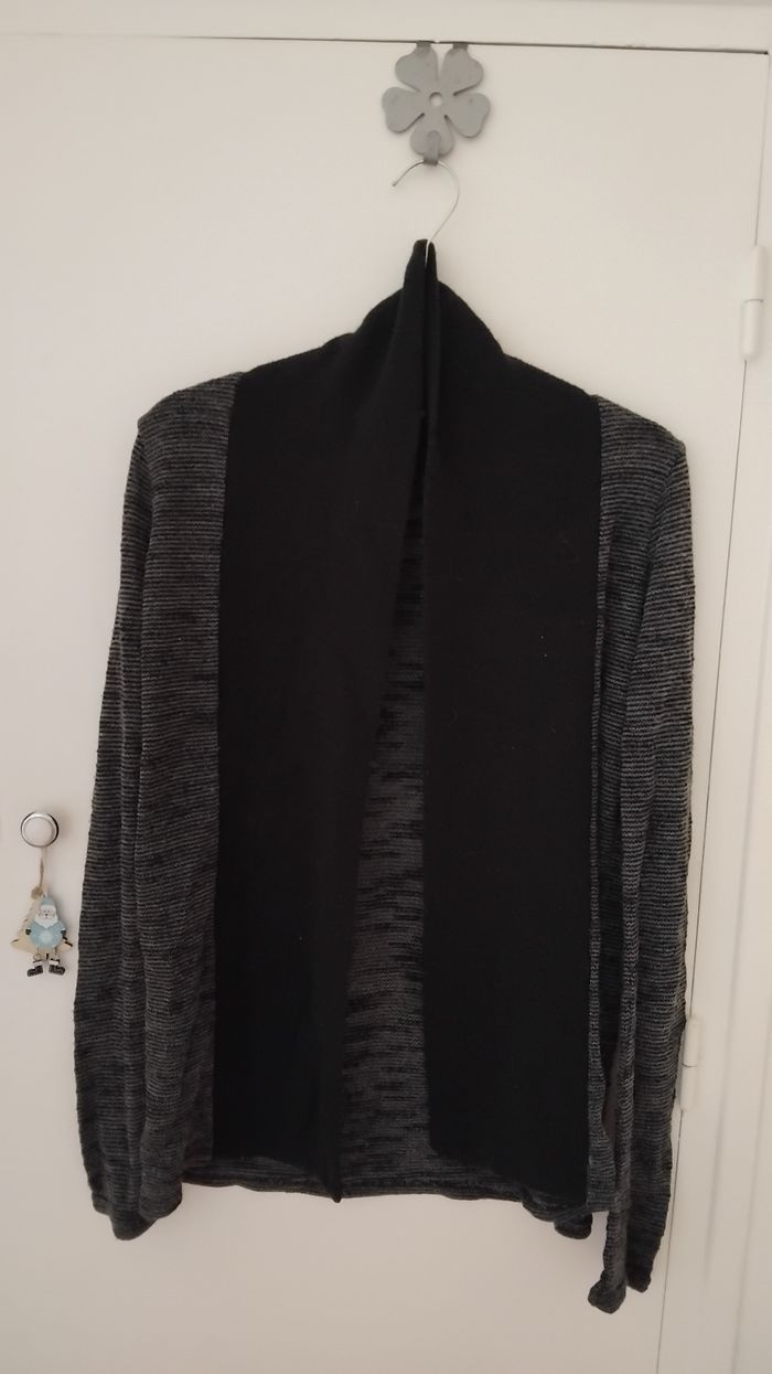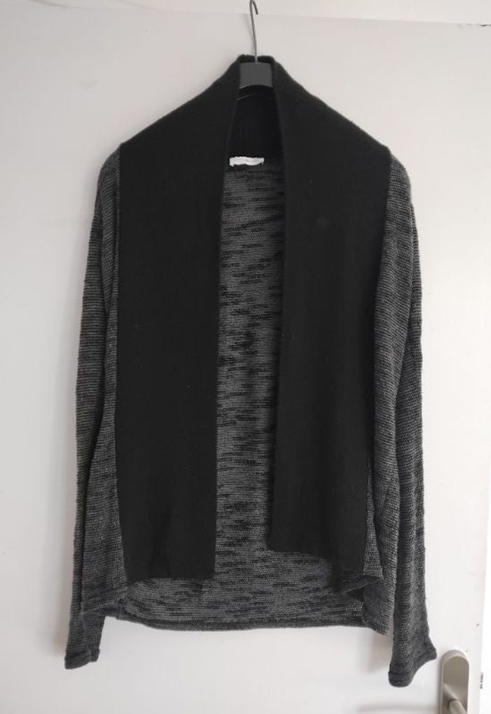 Gilet long plutôt fin maille acrylique Avec pan ouvert Longueur dos ~70cm Légèrement boulocheux ⚠️ taille petit surtout au niveau des bras Correspond plus à taille 2 que 3