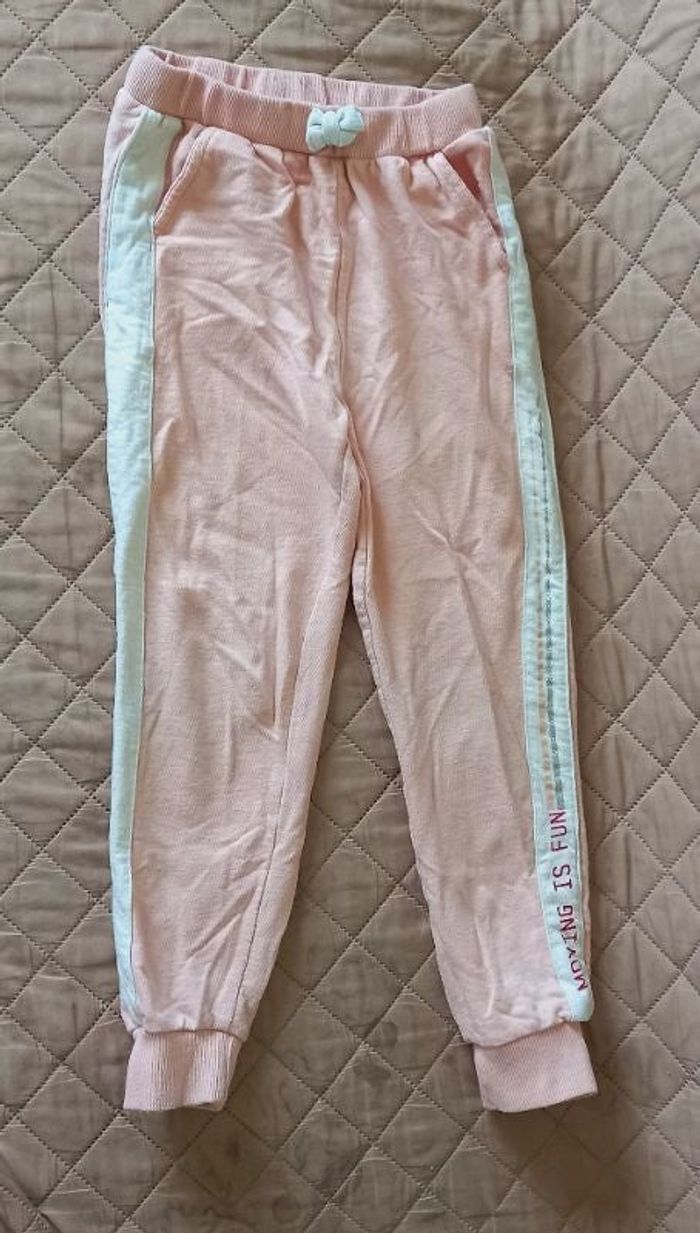 Matière plutôt légère - taille élastique avec lacets - bandes blanches sur les côtés dont un avec message et 2 lignes 1 pailletées Pas mal tâché à l'arrière