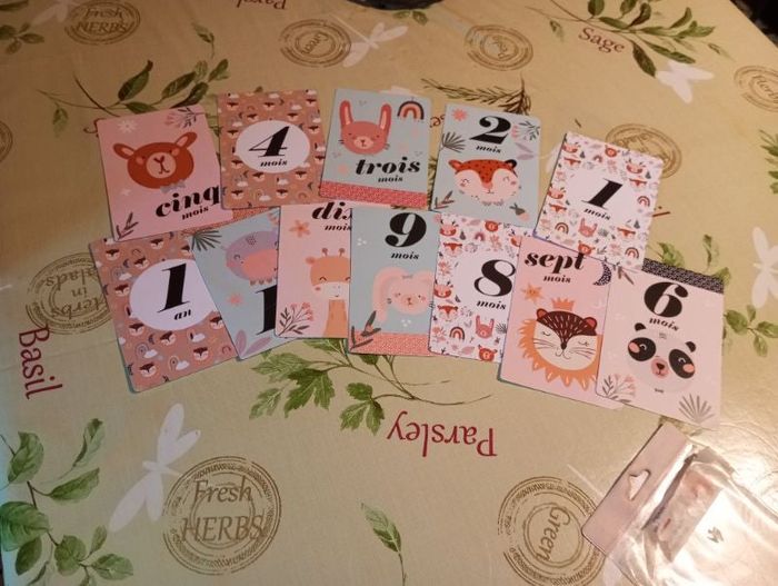 Carte évolutif les 12 premier mois de bébé déjà acheté d'occasion don une carte un peut abîmé (avoir sur la 2 ème photo)mais rien de méchant elle peut encore très bien servir je l'avait racheté comme ça déjà.