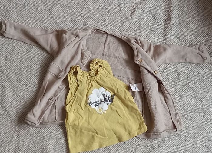 Lot débardeur en bon état et le gilet à 2 petits trous à l'une des manches et légèrement taché en bas sur le devant