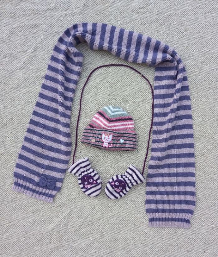1 écharpe - 1 paires de gants ficelle - 1 bonnet