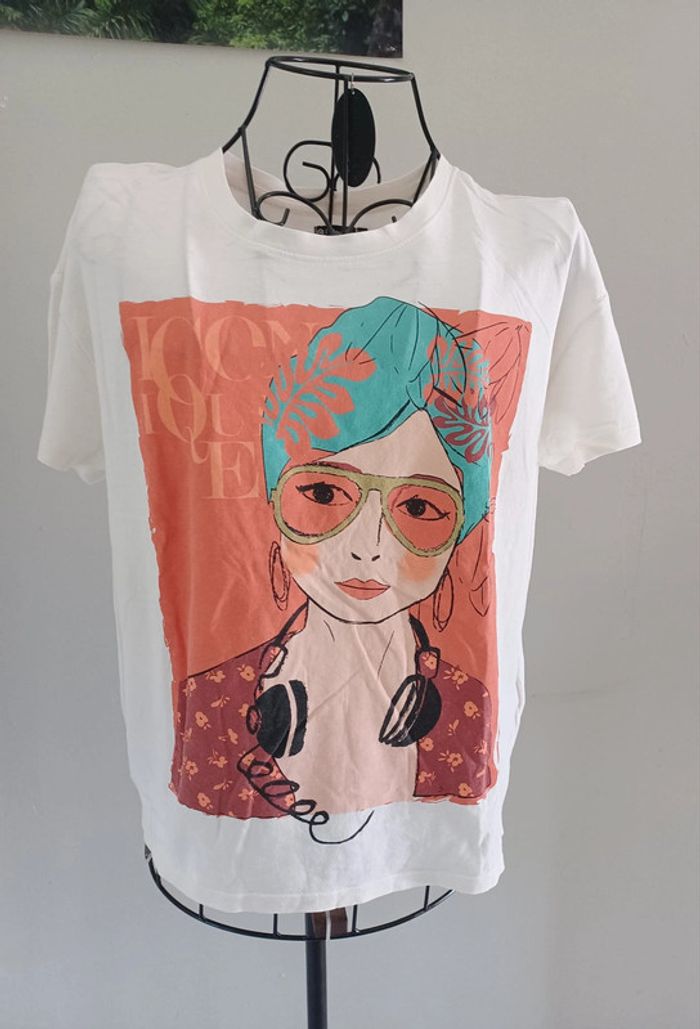 tee shirt coton gemo blanc et orangé "iconique" #teeshirtpikachu10 #femme34pikachu10