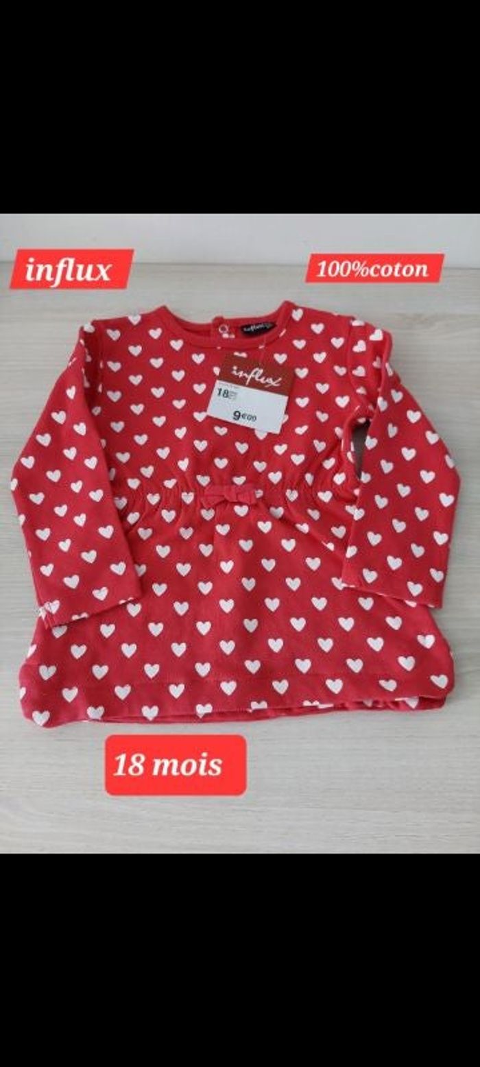 Vends Robe rouge avec cœurs fille 18 mois Elle est en très bon état car très peu mise Maison non fumeur Prix d'achat 9€ Vends 4€