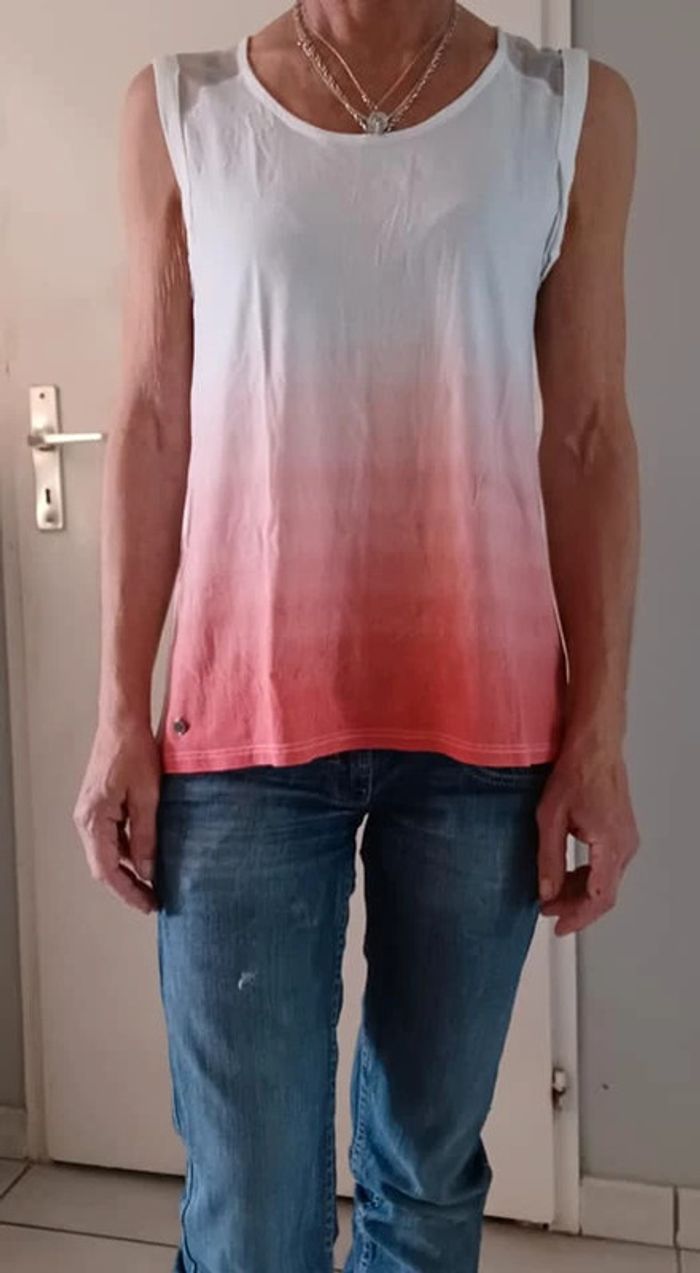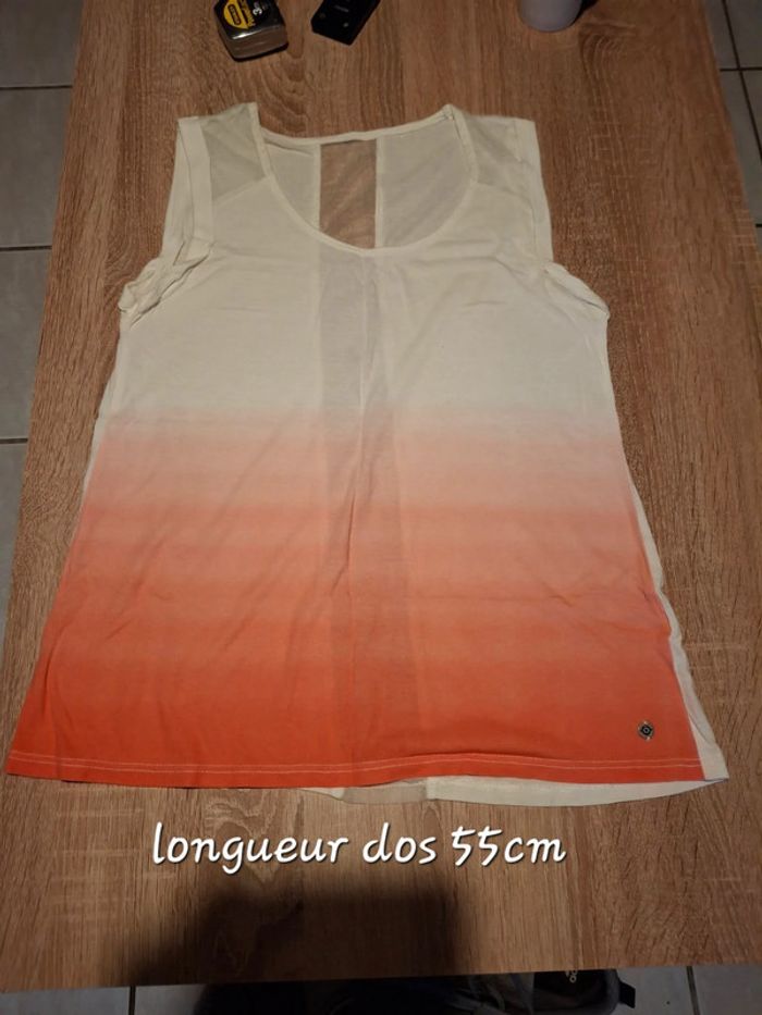 tee shirt blanc et degradé orange bande transparente au dos plus etiquette-porté sur taille 34 #femme34pikachu10 #teeshirtpikachu10