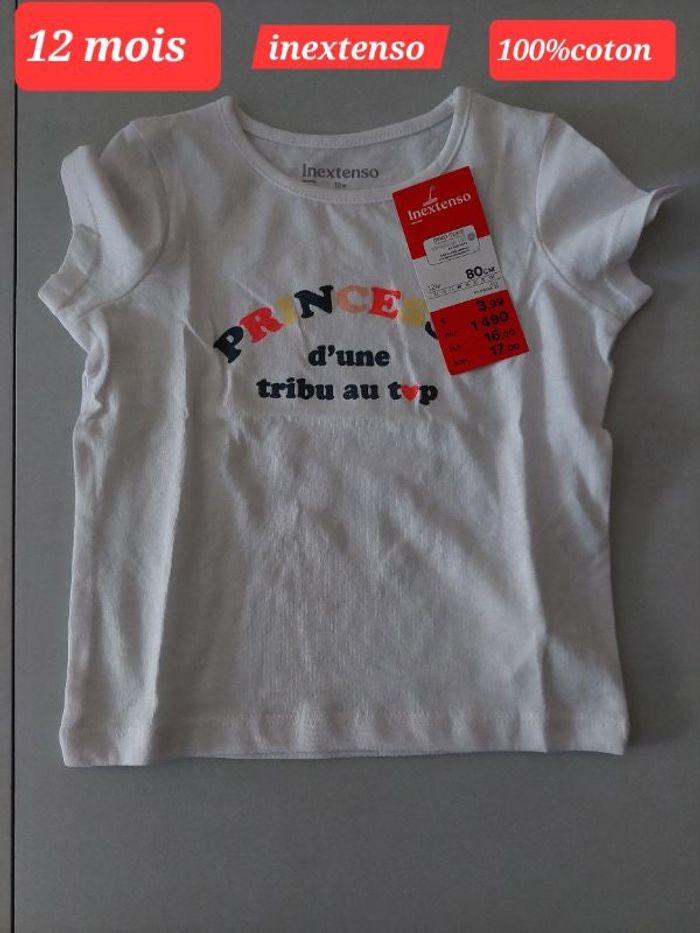 Vends Lot de 4 tee-shirts manches courtes fille 12mois Ils ont été mis Ils sont en très bon état Maison non fumeur