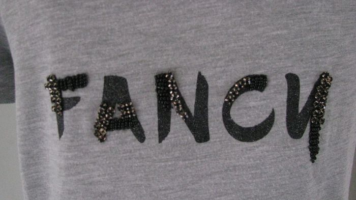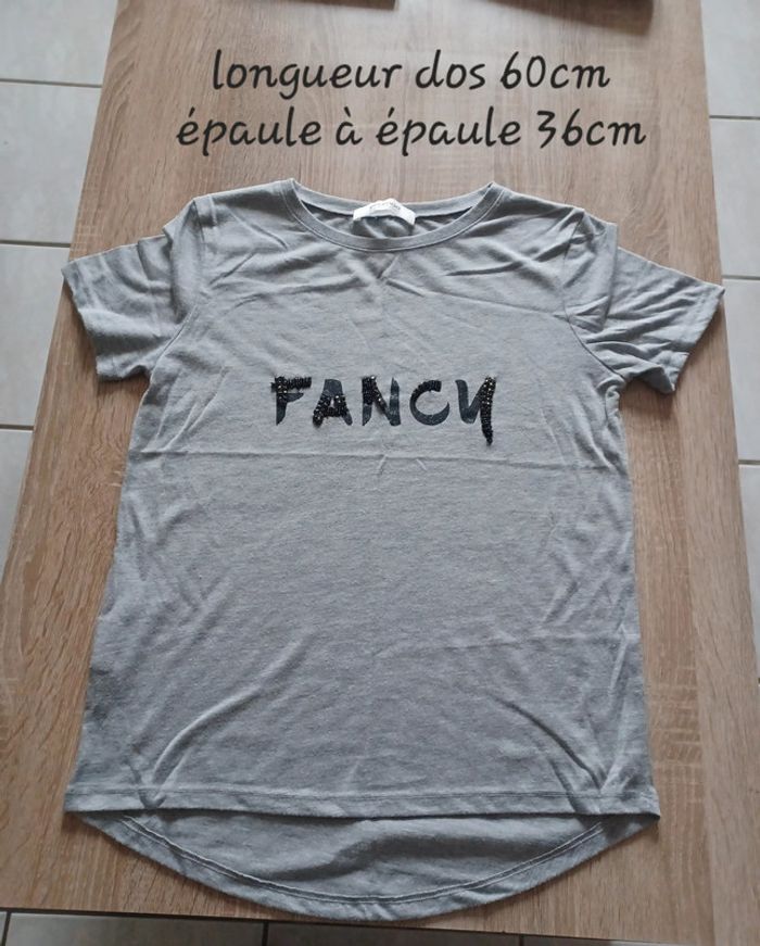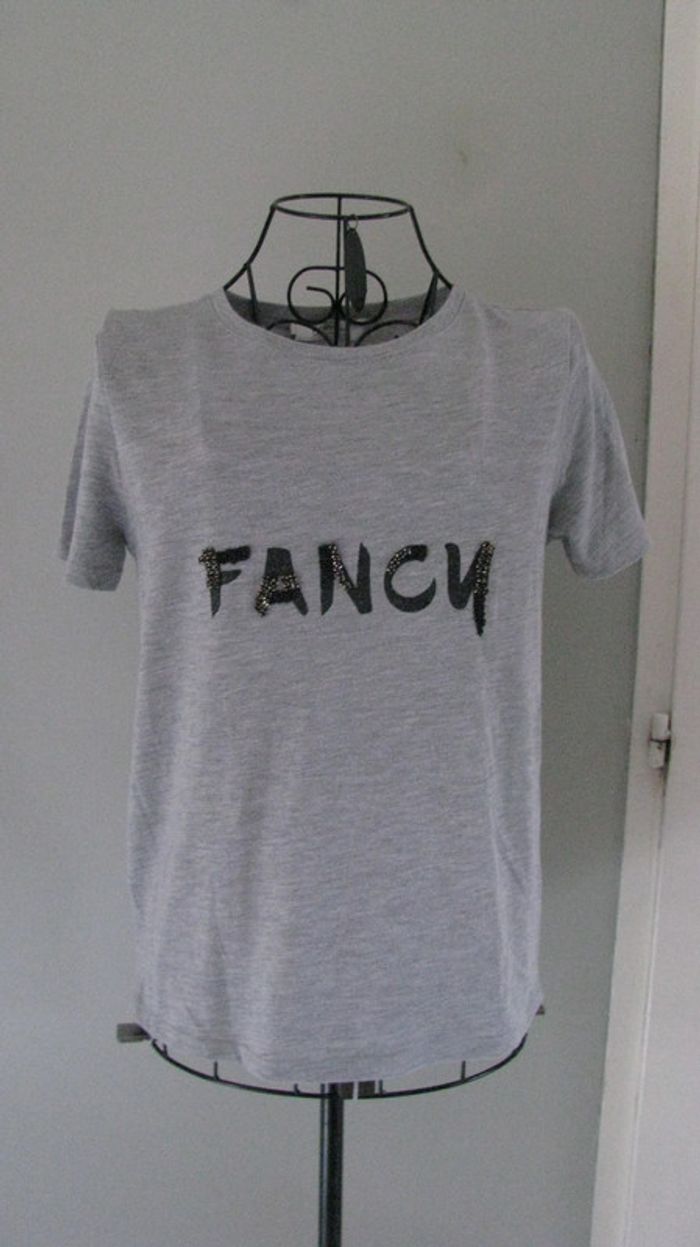 tee shirt gris promod fluide polyester et viscose ecriture avec perles #teeshirtpikachu10 #femme34pikachu10