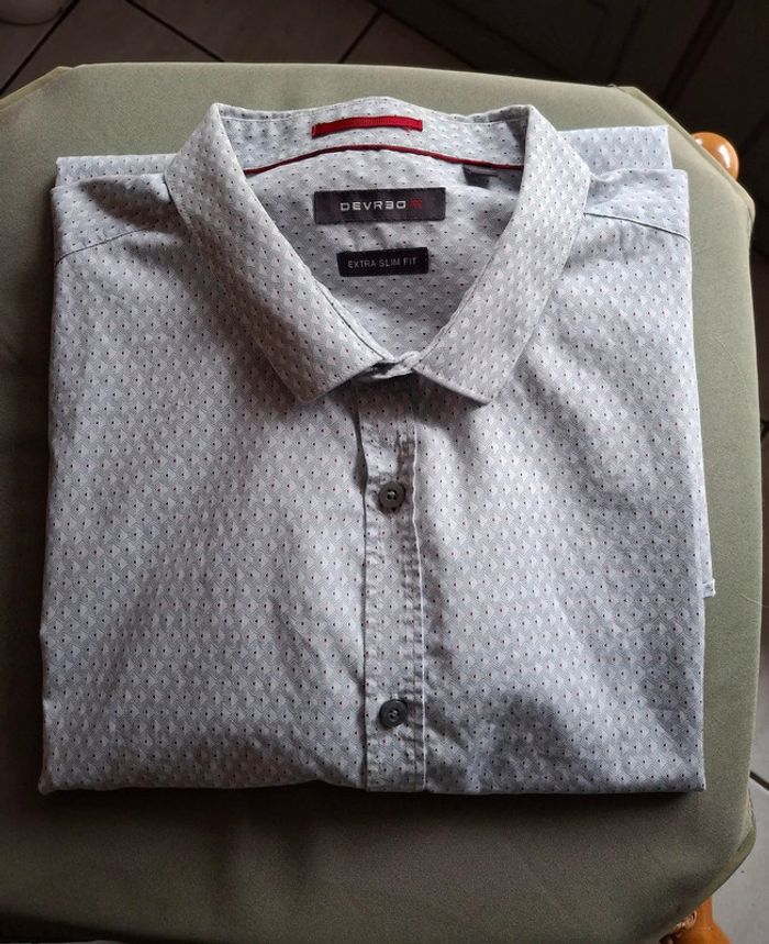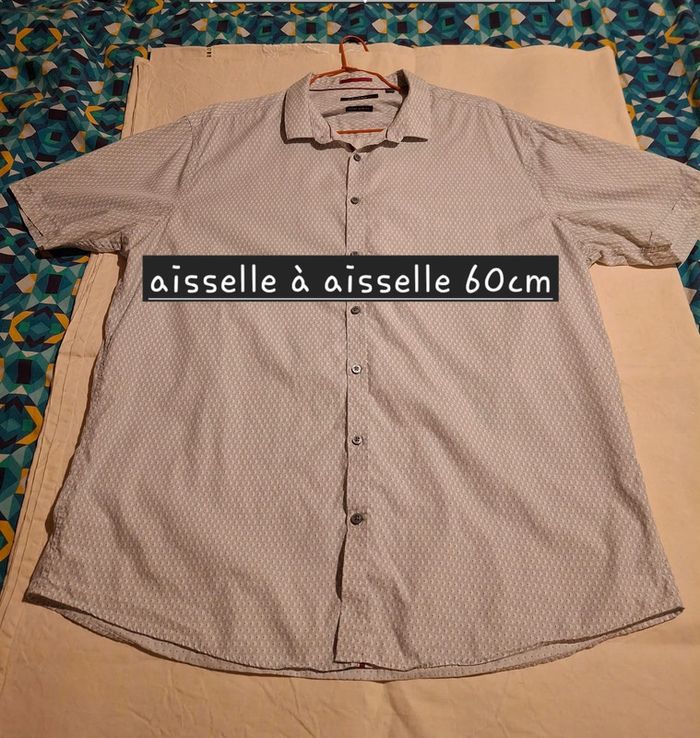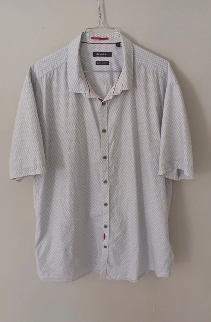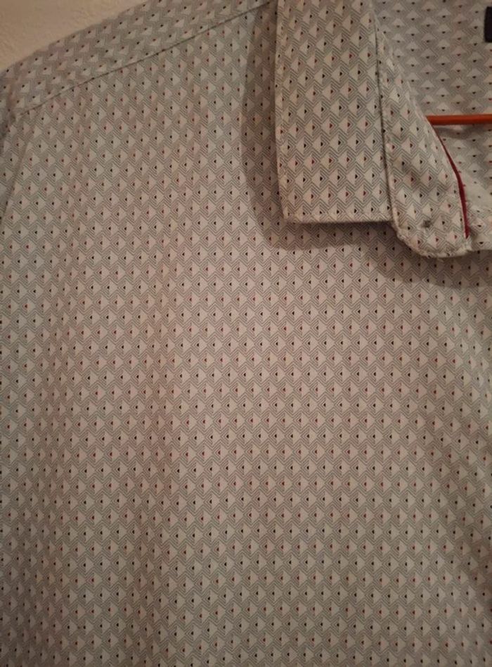 chemise manches courtes slim fit devred-taille xxl fond gris clair motif blanc et rouge une petite tache le long de la couture (photo 8) #chemisehommepikachu10 #hommexxlpikachu10