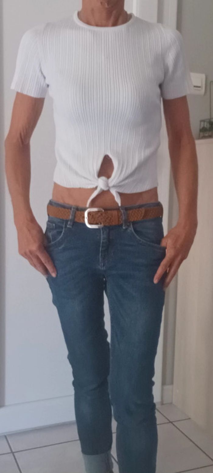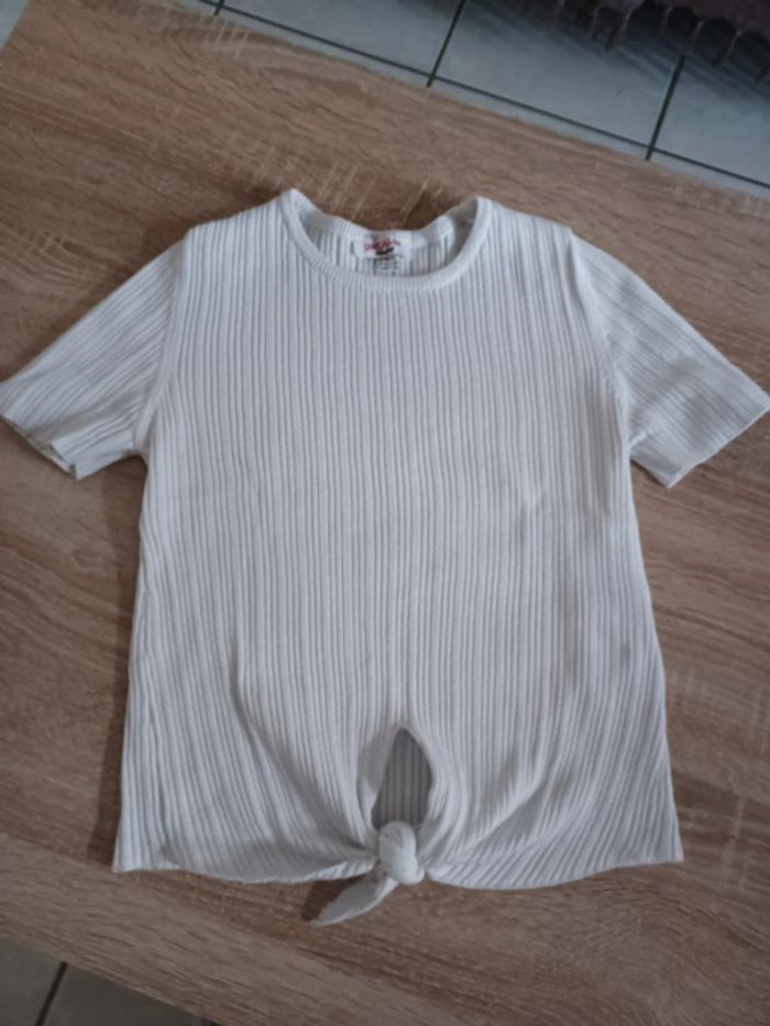 tee shirt blanc col rond petit noeud sur le devant porté sur modele 1.54m taille xs #femme36pikachu10 #teeshirtpikachu10 #jennyfer #croptop