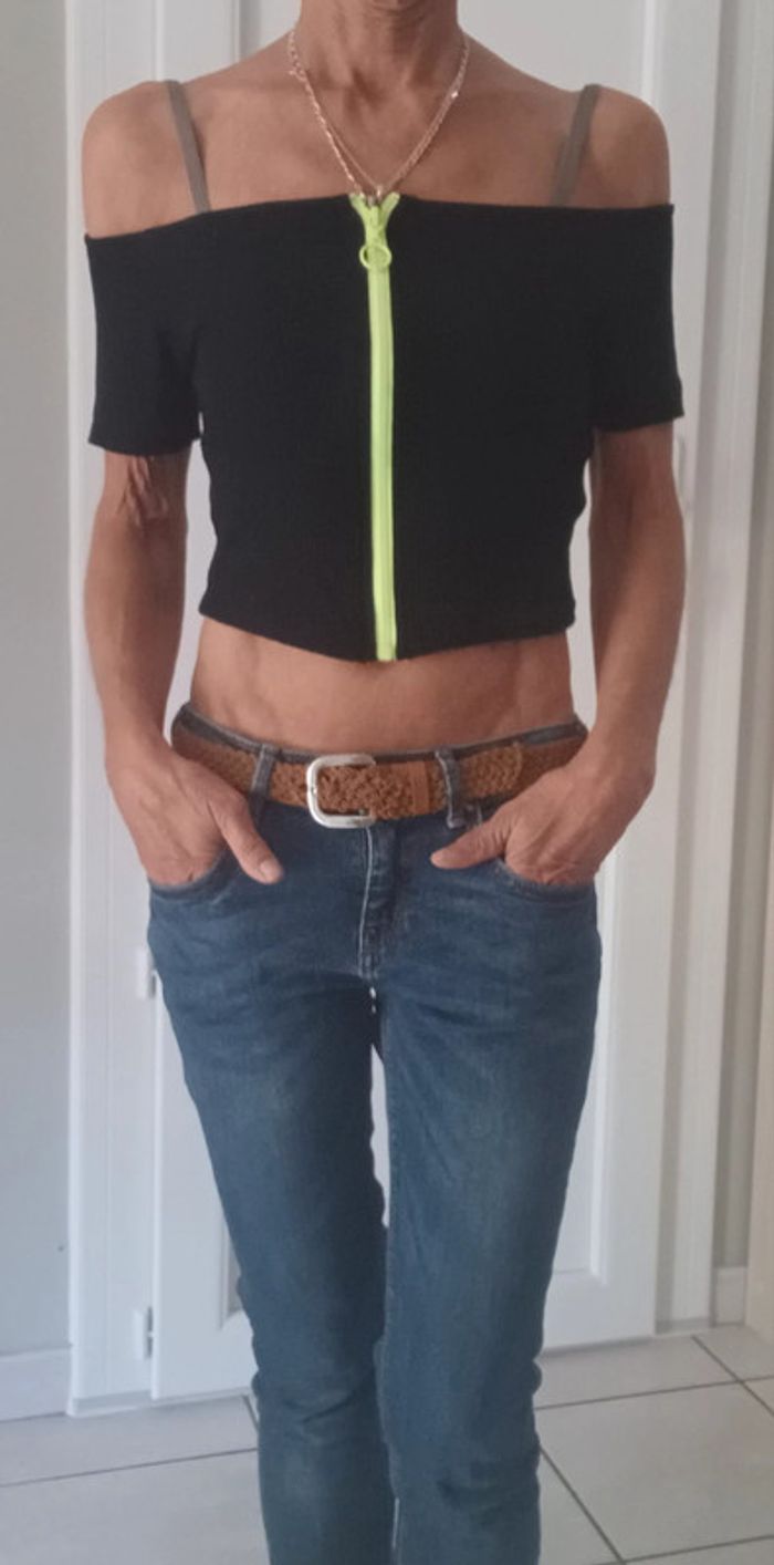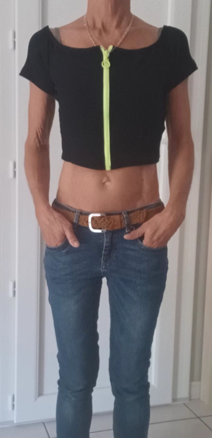 haut court (28cm) zippé noir et vert fluo #femmespikachu10 #toppikachu10 #croptop