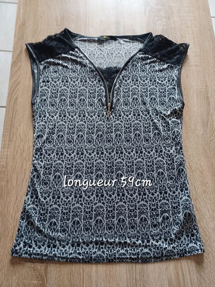 haut noir et blanc 59cm dentelle decolletté et epaule #femme36pikachu10 #toppikachu10