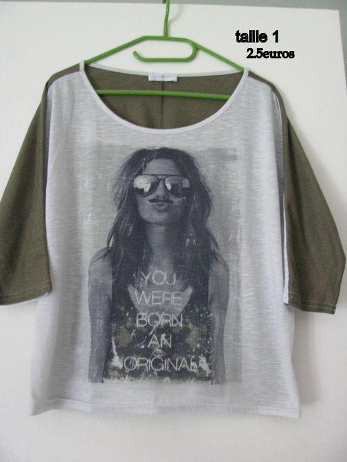 tee shirt kaki et gris clair t1 - photo numéro 1