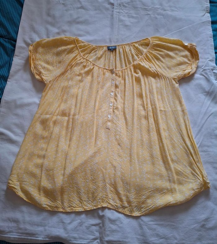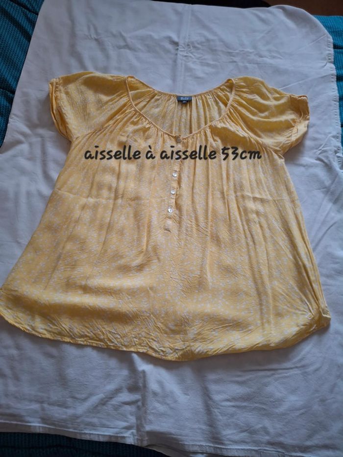 blouse viscose t46 jaune et blanche #femme46pikachu10 #blousepikachu10