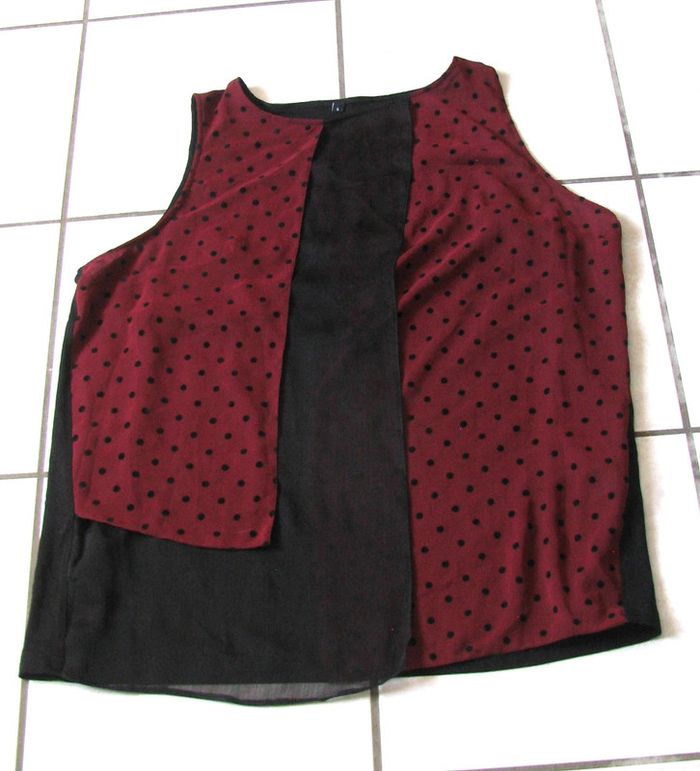 haut bi matiere taille 5 noir viscose et elasthane voile rouge et noir polyester #toppikachu10 #femme42pikachu10 #femme44pikachu10