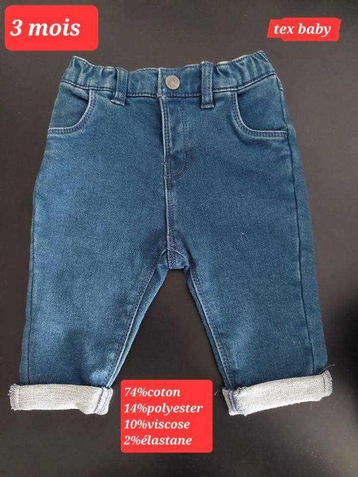 Vends Pantalon en jean à revers fille 3 mois. Il est en très bon état car très peu mis. Maison non fumeur.