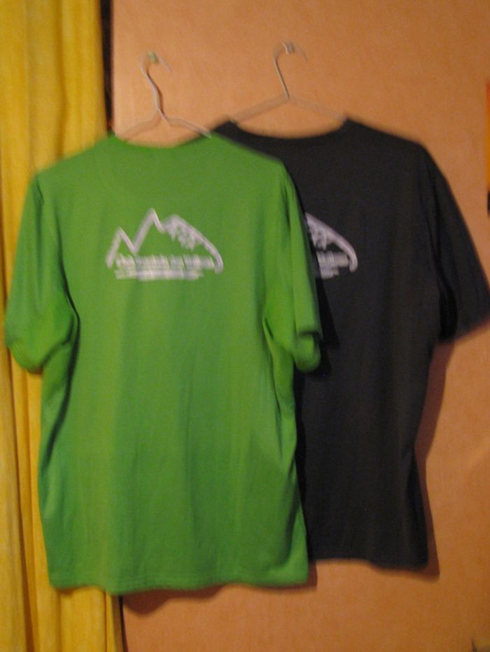 2 tee shirt (avec pub club escalade) un vert fluo et un gris foncé en polyester #hommexlpikachu10 #sportpikachu10