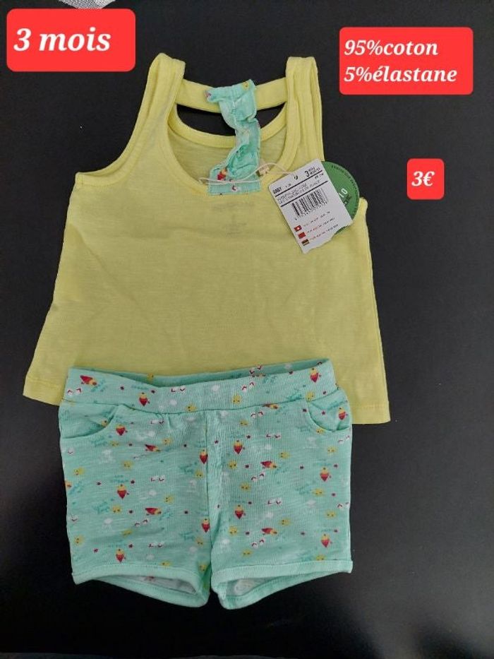 Vends Short et débardeur fille 3 mois. Il est neuf. Maison non fumeur
