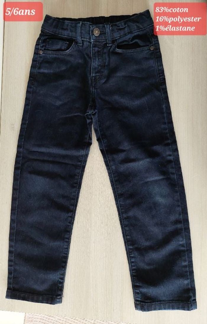 Bonjour, Je vends 3 pantalons en jean. C'est du 5/6ans. Ils sont en bon état. Maison non fumeur. Je vends 3€ le pantalon.