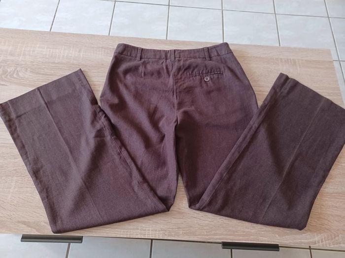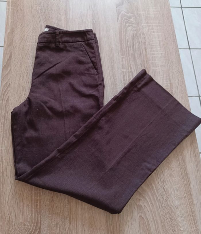 pantalon lin et viscose marron foncé t38-raccourci #pantalonpikachu10 #femme38pikachu10