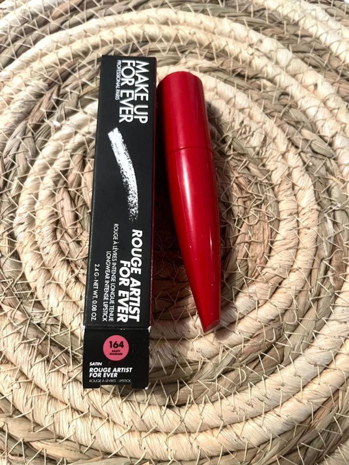Rouge à lèvres hydratant longue tenue satin (réf 164 Sassy Rhubarb) ; hautement pigmenté, résistant à l’eau.