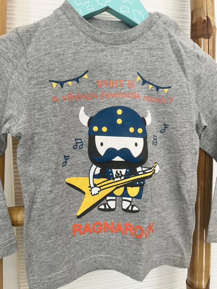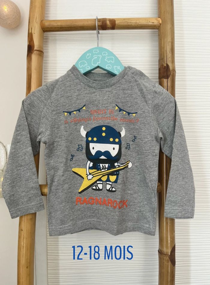 ♻️ En excellent état 🫧 Lavé avant envoi, maison non-fumeur 🚫 Aucun envoi en Vinted Go T-shirt ML gris à imprimé viking, 2 pressions à l’encolure, taille 12-18 mois (76-82cm) 💌 Les réductions sont activées sur les lots, n’hésitez pas à consulter mon dressing ! #sacha_12mois #sacha_18mois