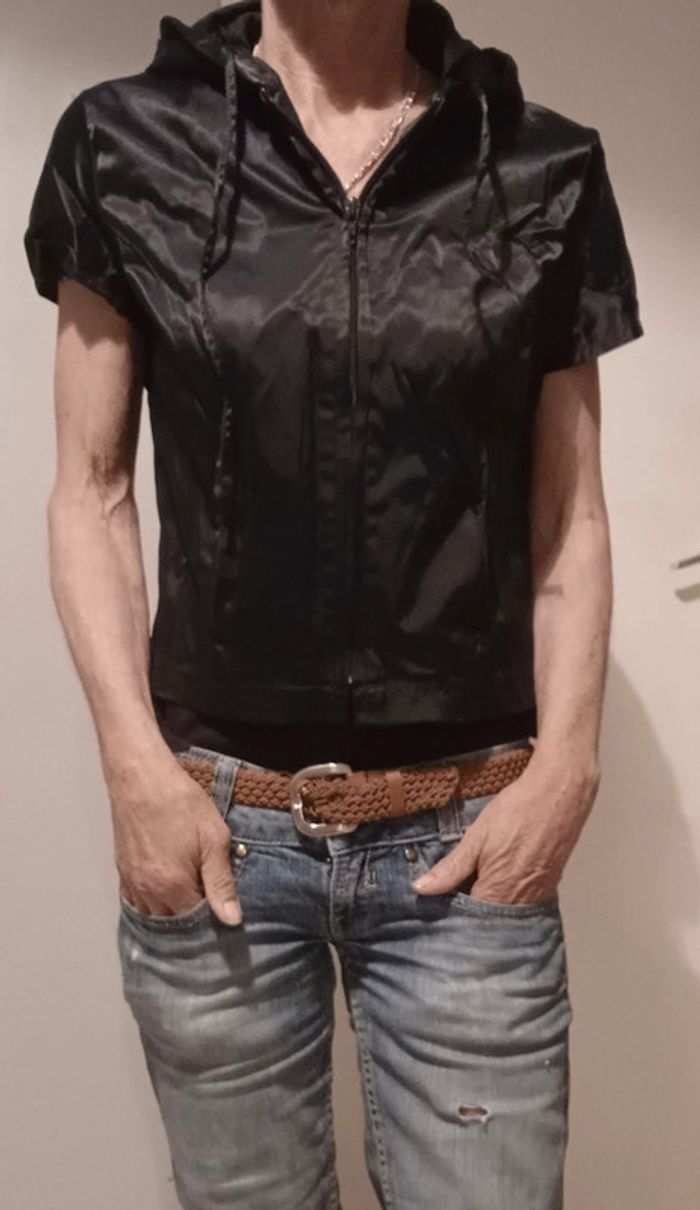 veste à capluche zippée courte (45cm)-polyamide les petites bombes(année 2000) convient plus pour 36 (moi t34 1.54cm) #vestepikachu10 #femme36pikachu10