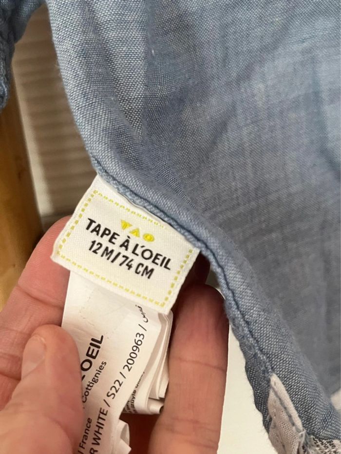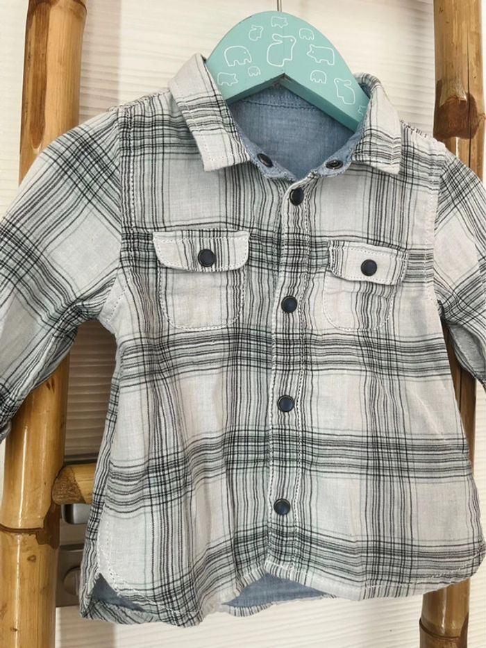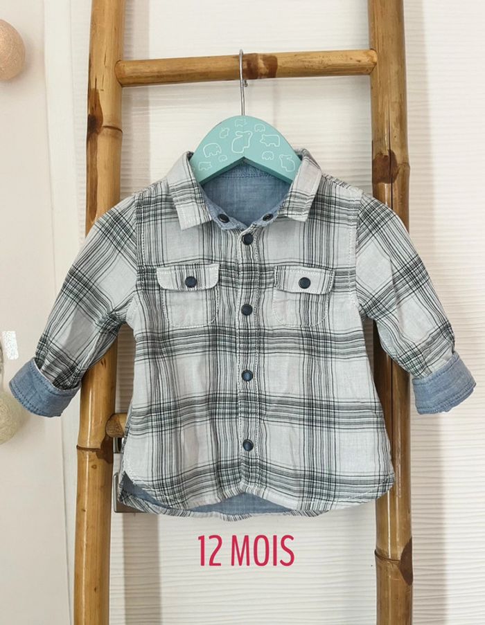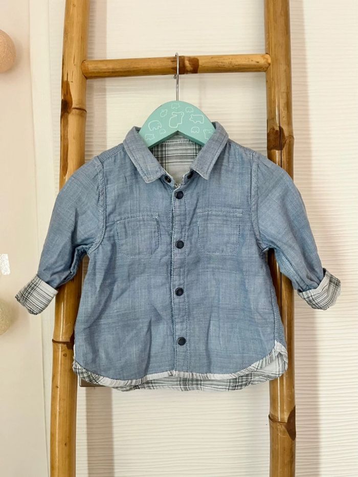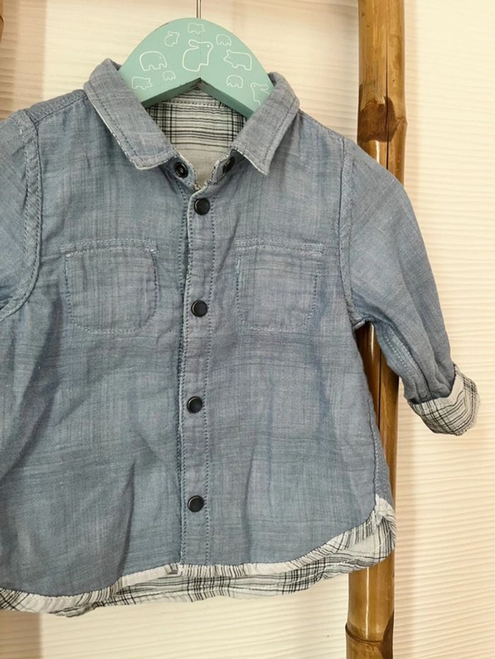 ♻️ En très bon état, sans défauts 🫧 Lavée avant envoi, maison non-fumeur 🚫 Aucun envoi en Vinted Go 👕 Chemise réversible 💯 coton, couleur denim et carreaux, fermeture par pressions, taille 12 mois (74cm) 💌 Les réductions sont activées sur les lots, n’hésitez pas à consulter mon dressing ! #sacha_12mois