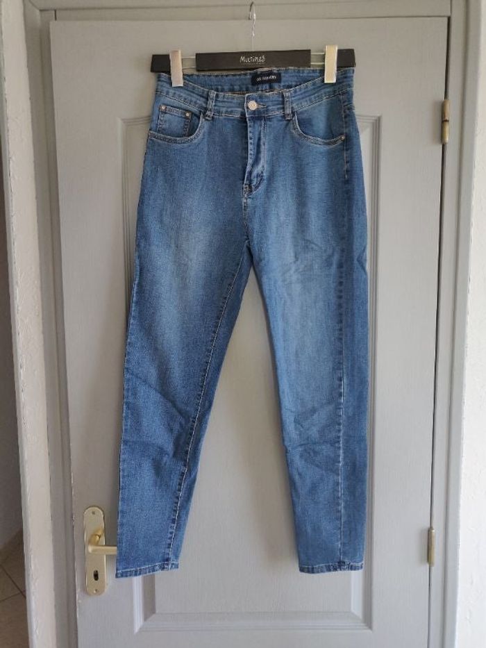 Taille 40, largeur taille 38 cm extensible, longueur 97 cm, largeur bas de jambes 13 cm