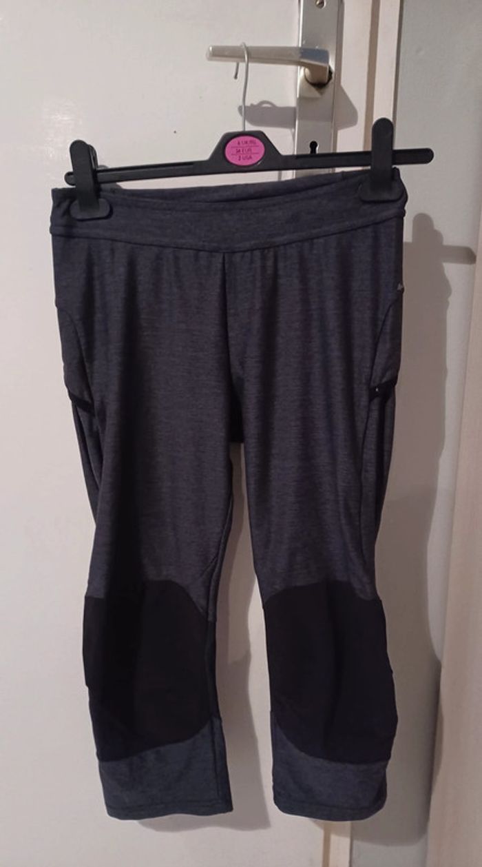 legging court bi matiere t38 noir et gris plus eti de taille polyamide et elasthane