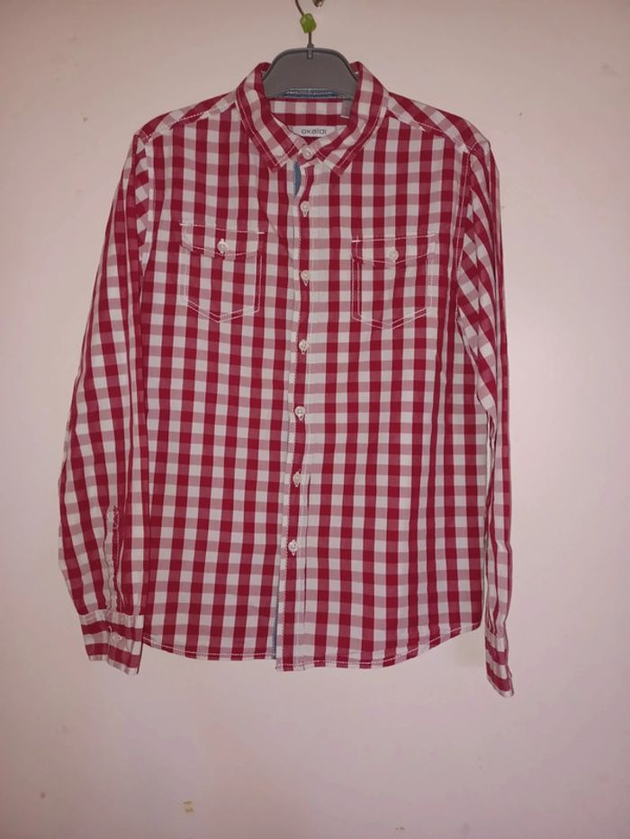 Chemise à carreaux rouge et blanche okaidi . portée 2 fois #garcon10pikachu10