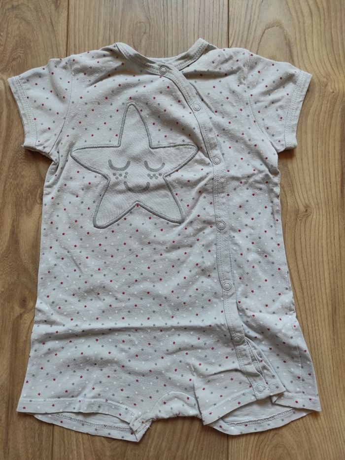 Pyjama été 18 mois Tex. Couleur grise avec motifs étoiles. Ouverture par pressions sur le devant.