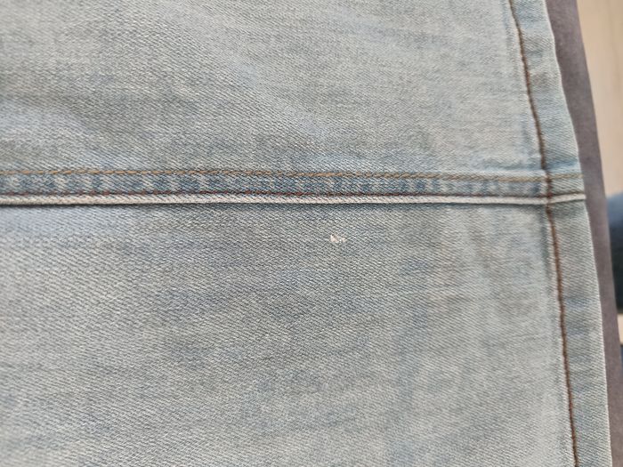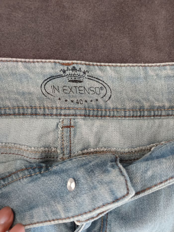 Jupe en jean. Longueur totale 47cm. Matière elasthane. Un léger accro arrière voir photo