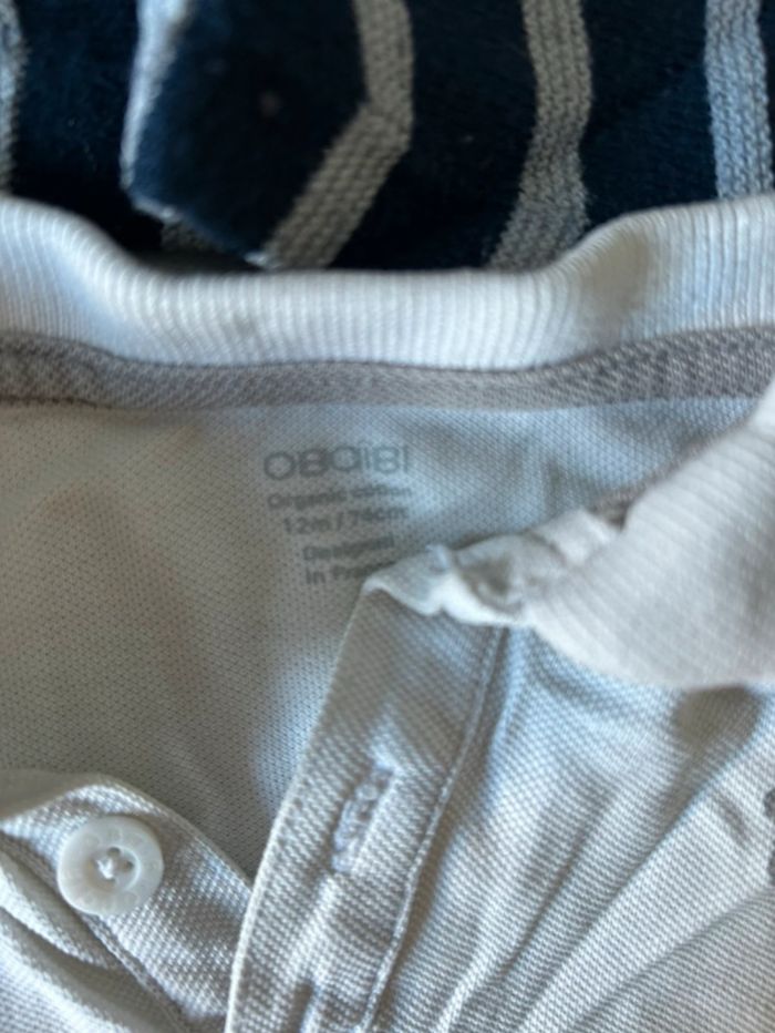 1 pull (obaibi 12mois) avec 2 polo bébé (blanc : obaibi en 12 mois et le gris Mini rebel en 9/12mois)