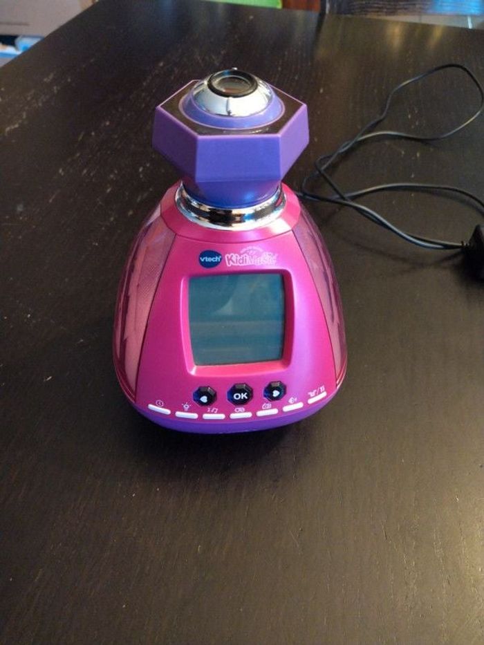 En très bon état. Fonctionne parfaitement. Radio réveil, jeux, projection de l'heure au plafond Fonctionne sur secteur ou avec piles. Câble secteur fourni notice incluse